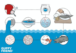 • The Guppyfriend washing bag is the first pragmatic solution that prevents microplastic fibres from entering rivers and oceans through the washing of synthetic textiles. The broken fibres collect in the corners of the washing bag after washing and can be easily removed and disposed of.