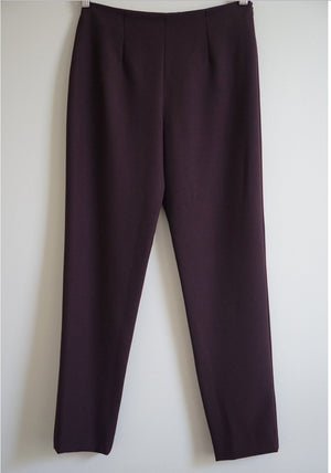 • The Emma Pants are made from 100% Fine Wool, a light weight wool fabric, and do not require lining.  For a more seamless, elegant and clean-lined look, pants have no waist band. Instead, pants feature two feminine darts front and back as well as a left hand side invisible zipper (avoiding any unnecessary fabric and design bulk around the stomach area).  These are full length pants (just above the ankle) with a narrow leg width.knee.