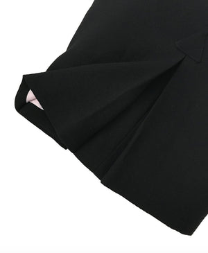 - The Lilli dress is 100% Wool Crepe Sleeveless Shift Dress in black with a 100% Silk Lining in a pale pink colour for a feminine touch. The dress has a box pleat at the back and an invisible zipper on the left-hand-side seam for effortless dressing and comfort. The dress length is on the knee.
