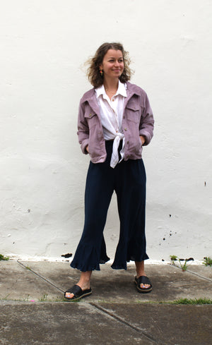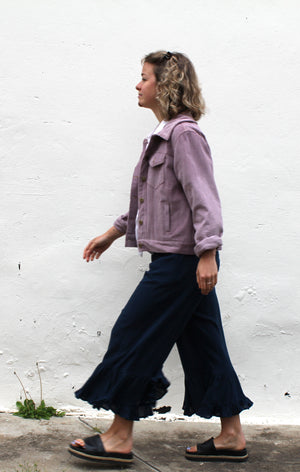 - Classic cut jacket in 100% Cotton Corduroy and 100% Cotton Lining (pockets only). Includes four functional pockets. Keyhole buttonholes and antique gold jean buttons.