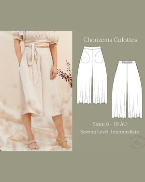 - These easy fitting culottes are high waisted with elastic in a section of the back waistband to make them super comfortable while creating a flattering shape around the waist. The culottes have a flared leg and are the perfect midi length which can easily be altered. P.S “Thanks it has pockets!"